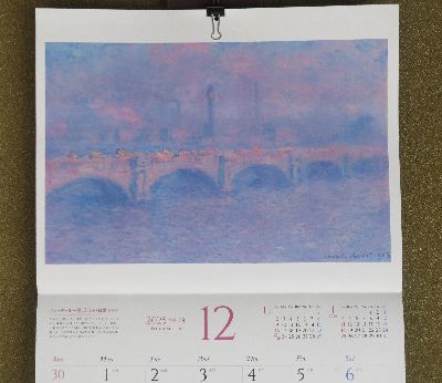 モネのカレンダーはフランスの風景ですが、見ると気が休まります。帰宅すると玄関で最初に目に入るものです。