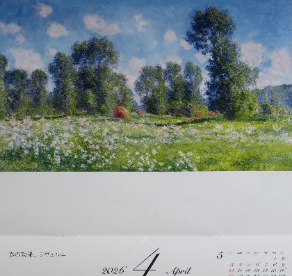 玄関はモネです。南仏の春景色ですね。白い花は何でしょうか?